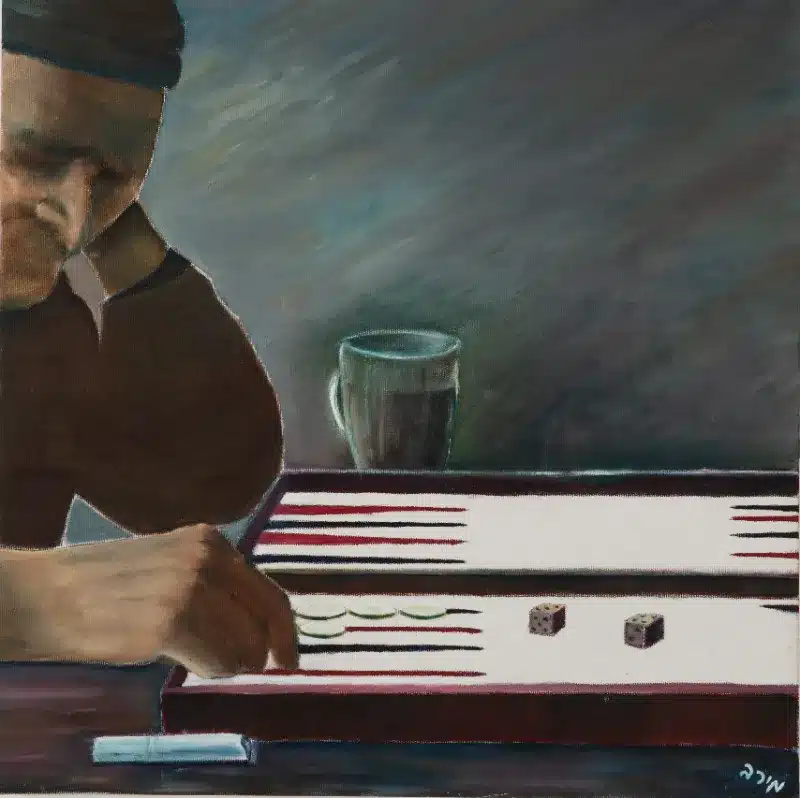 "עת לשחוק ועת לבכות" בלבי חיים רגעים קטנים וביתיים של צחוק משפחתי עם לוח השש-בש, כוס הקפה והסיגריה, והיחד שאבי כל כך אהב. הזיכרונות שלי מאבי, עדיין כל כך חיים. קשה לי להפנים, שהוא איננו. את דמותו ציירתי בטכניקת הספייה, כדמות בצל, שעדיין נוכחת, חייה ונושמת, בניגוד לשאר החפצים המצויירים בצבעים עזים וחיים. מבחינתי הזכרון […]