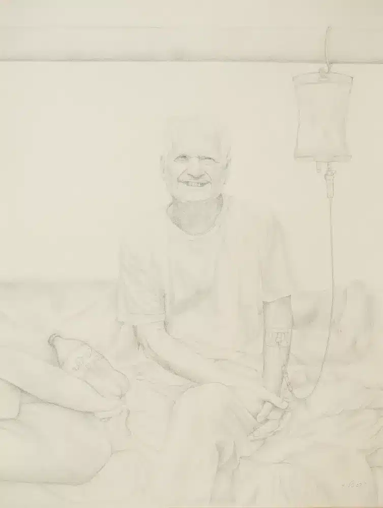 ברישום עיפרון מתואר סבא של האמנית, היושב בנחת על הנדנדה, ושומר על רוח חיים גם כשהוא נמצא במסדרונות של המחלקות הכי קשות. מסבירה האמנית הדס שלום: "ביצירה ציירתי את סבי, המתמודד יום-יום עם המחלה ועם טיפולים לא פשוטים. למרות הכל, הוא בוחר בכל בוקר מחדש בחיים – באמונה, באופטימיות ובשמחה פנימית אמיתית. עבורי, הוא דמות […]