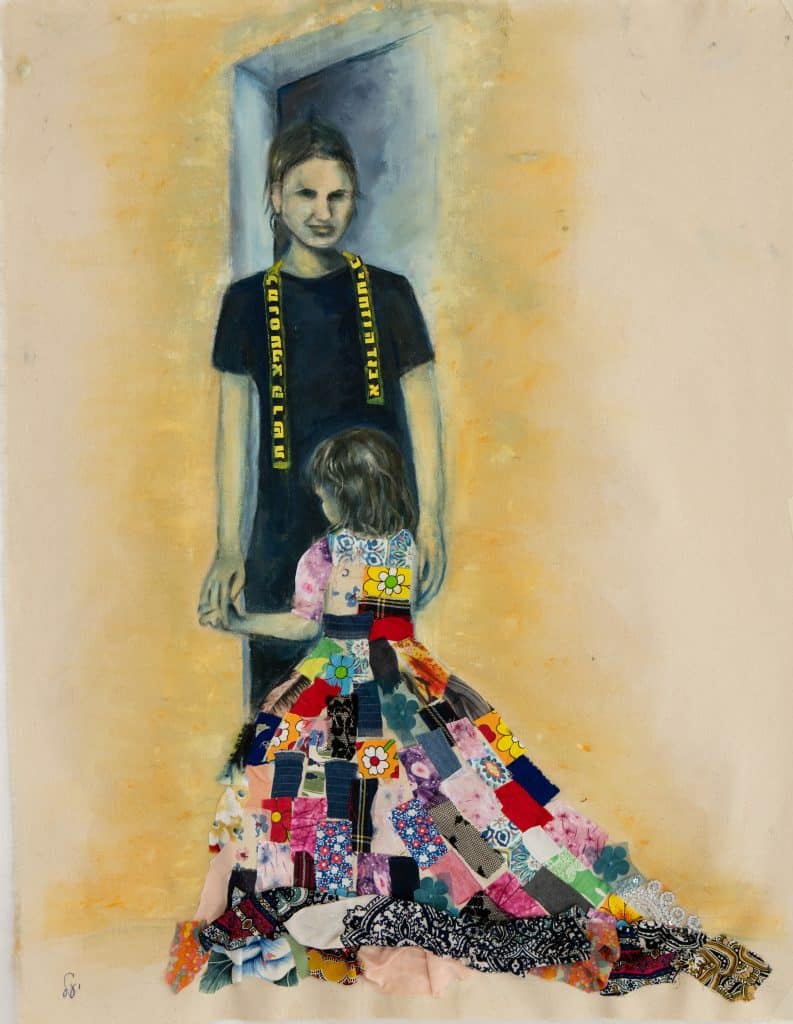 היצירה מבוססת על צילום ישן. אמא ובת שהקשר ביניהן נוצר דרך הבד, הבגד. מסבירה האמנית יעל ביטון: "נולדתי בשנות השישים, בת בכורה להורים עולים ממרוקו, שהגיעו לארץ מתוך כמיהה לאהבת הארץ וללשון הקודש.אמא לא דיברה עברית. היא לא תקשרה מילולית. אמא היתה תופרת ומעצבת במקצועה. תפרה הכל לבית ובמיוחד אהבה לתפור לי שמלות. כך היא […]