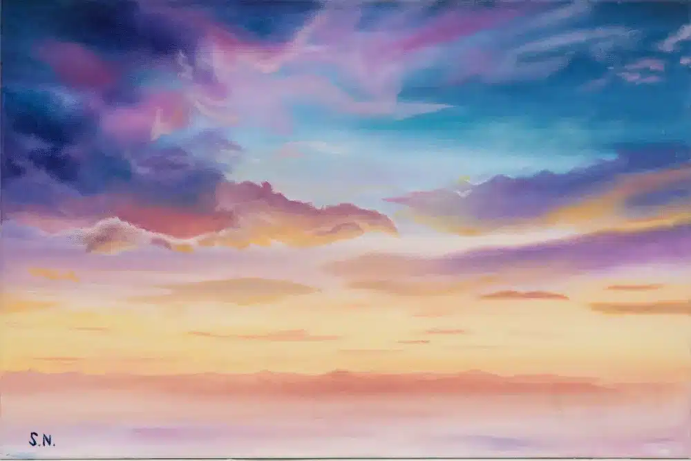 היצירה מורכבת משני קנבסים המוצבים זה לצד זה: האחד מתאר שמיים בהירים, שטופי אור ותקווה, ואילו השני מציג שמיים סוערים, אפלים ודרמטיים. הניגוד החזותי ביניהם מדגיש את הקיום הבו-זמני של רגשות מנוגדים בחיי האדם. דרך דיאלוג זה בין אור לחושך, מציעה היצירה התבוננות ברגעים של שמחה ושל קושי כאחד – ומעלה את רעיון נשיאת ההפכים, […]